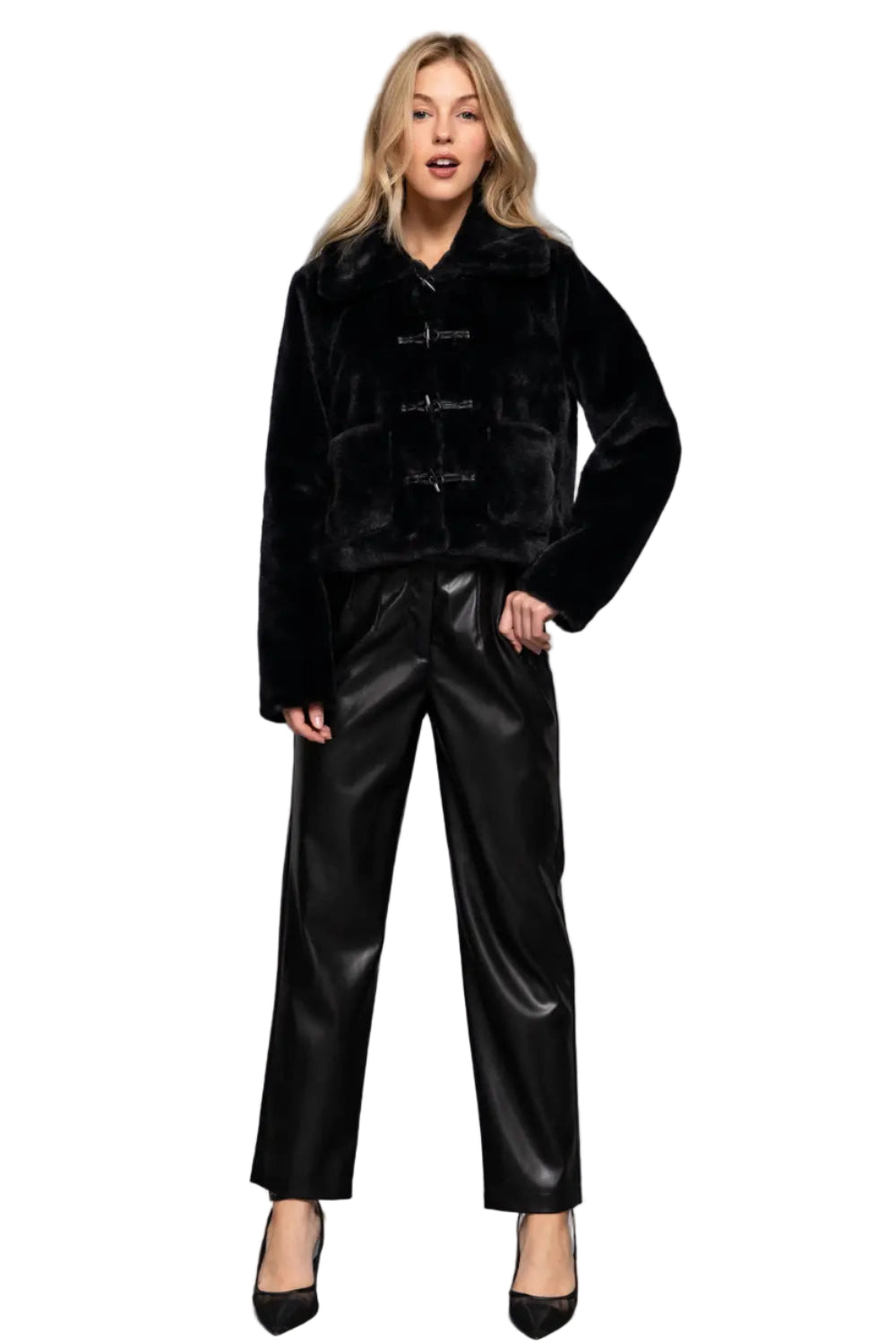 Snuggle up in style with this luxe fur duffle jacket. Toggle button closures, a cozy collar, and plush fur details make it the perfect companion for chilly days. Effortlessly chic and undeniably warm—your new favorite layer awaits.