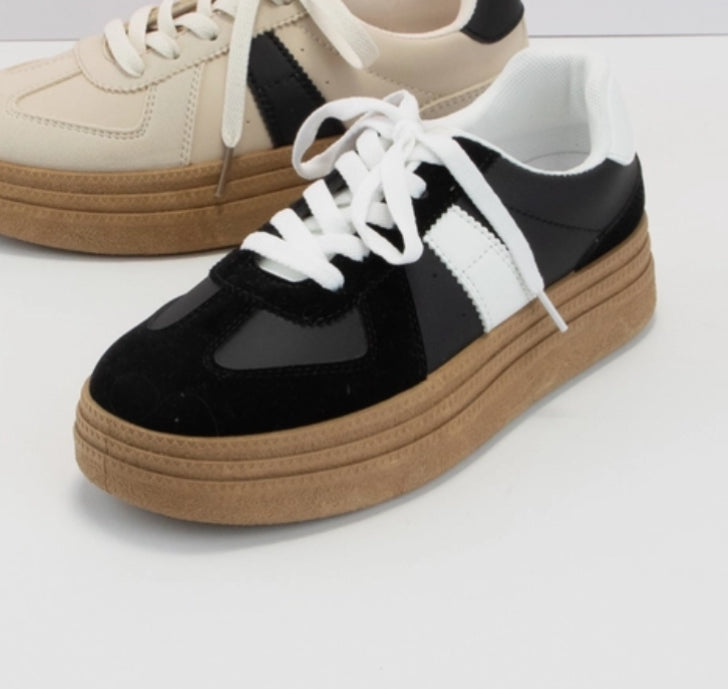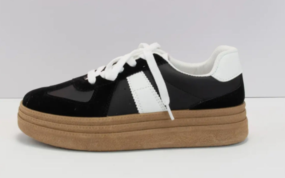 Introducing our Platform Tennis Sneakers, featuring a fashionable design and round toe front for added comfort. Elevate your style and game with these chic and versatile sneaker